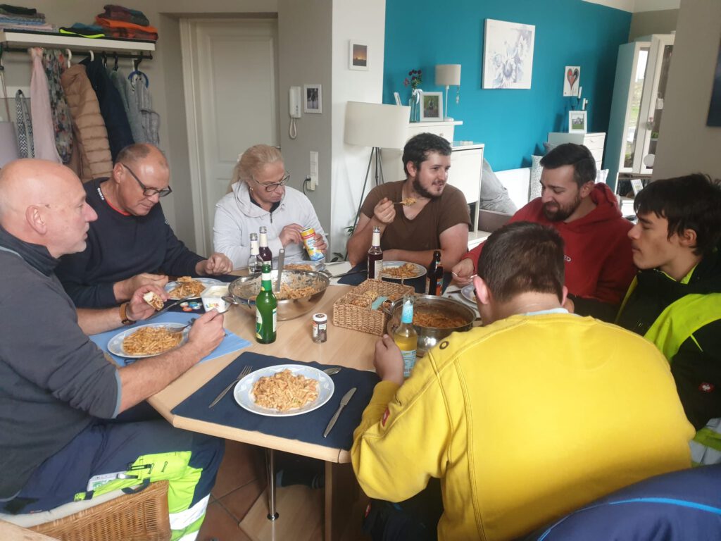 Und ich darf es hier ruhig sagen: Ohne gutes Essen läuft kein Gleisbau. Die regelmäßige Verpflegung – oft im Bahnhof Griedel – war mehr als nur Mittagspause. Sie war Treffpunkt, Dankeschön und Motivation zugleich. Als Dampflok weiß ich gutes Brennmaterial zu schätzen – und für Menschen gilt offenbar Ähnliches.